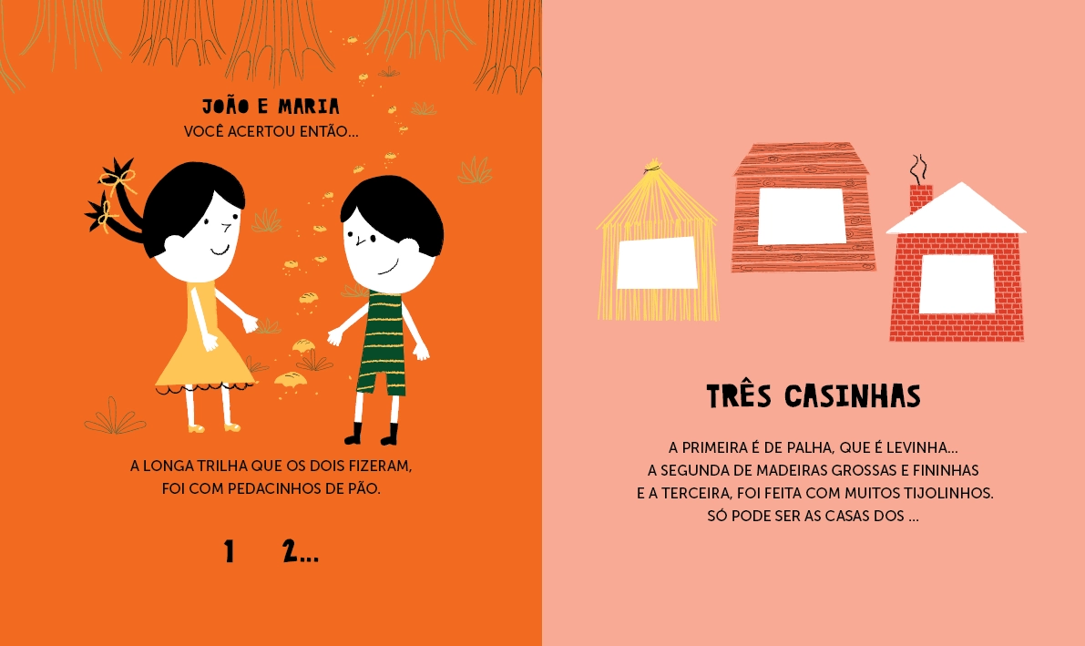 Três casinhas. A primeira é de palha, que é levinha…A segunda de madeiras grossas e fininhas e a terceira, foi feita com muitos tijolinhos. Só pode ser a casa dos…3 porquinhos