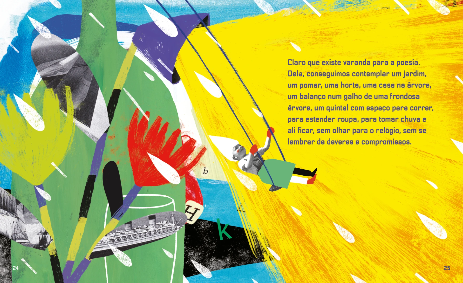 Neste ensaio literário, o autor aborda questões socioemocionais e identitárias, incluindo discussões sobre o tempo e o lugar da poesia. As ilustrações em camadas de Juliana Basile ilustram pensamentos sobrepostos, que vão se revelando ao virar da página. Texto e imagens oferecem aos adolescentes um convite para pensarem sobre temas que remetem a suas questões mais íntimas.