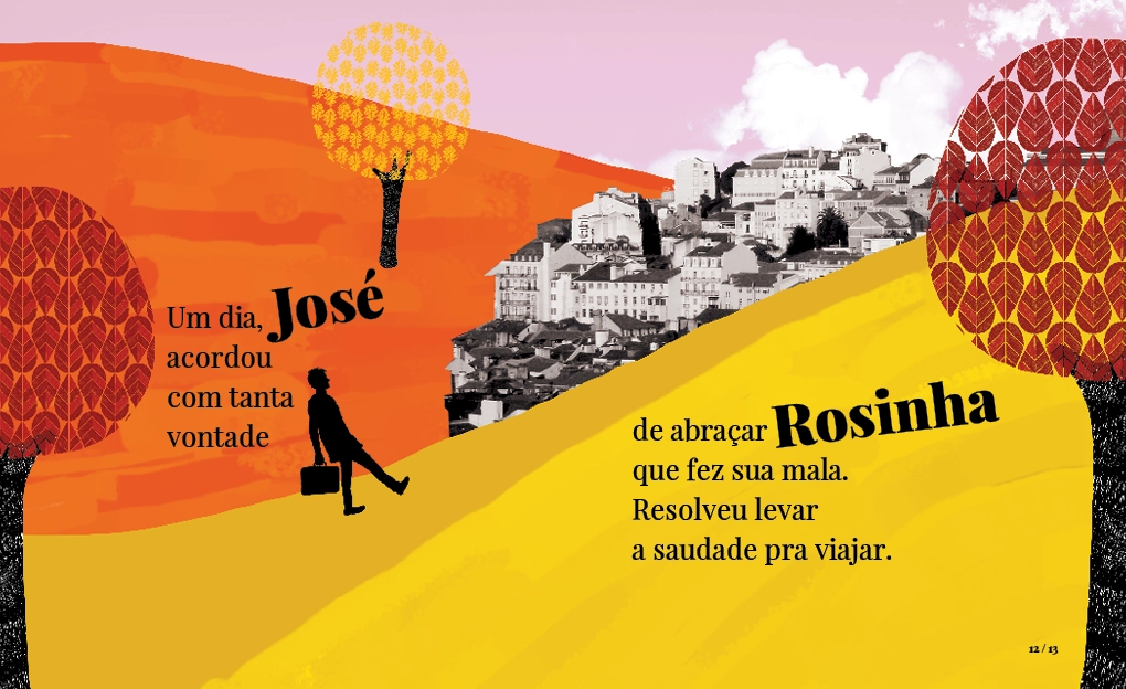 Um dia, José acordou com tanta vontade de abraçar Rosinha que fez sua mala.Resolveu levar a saudade pra viajar.