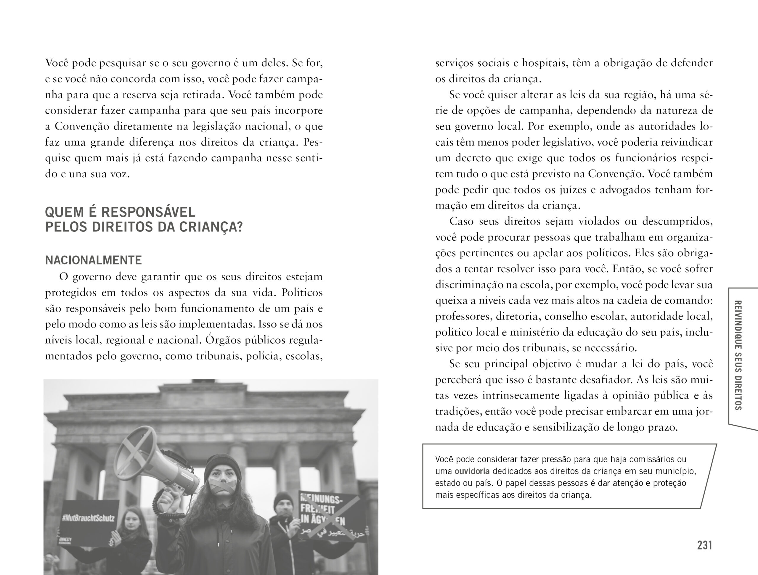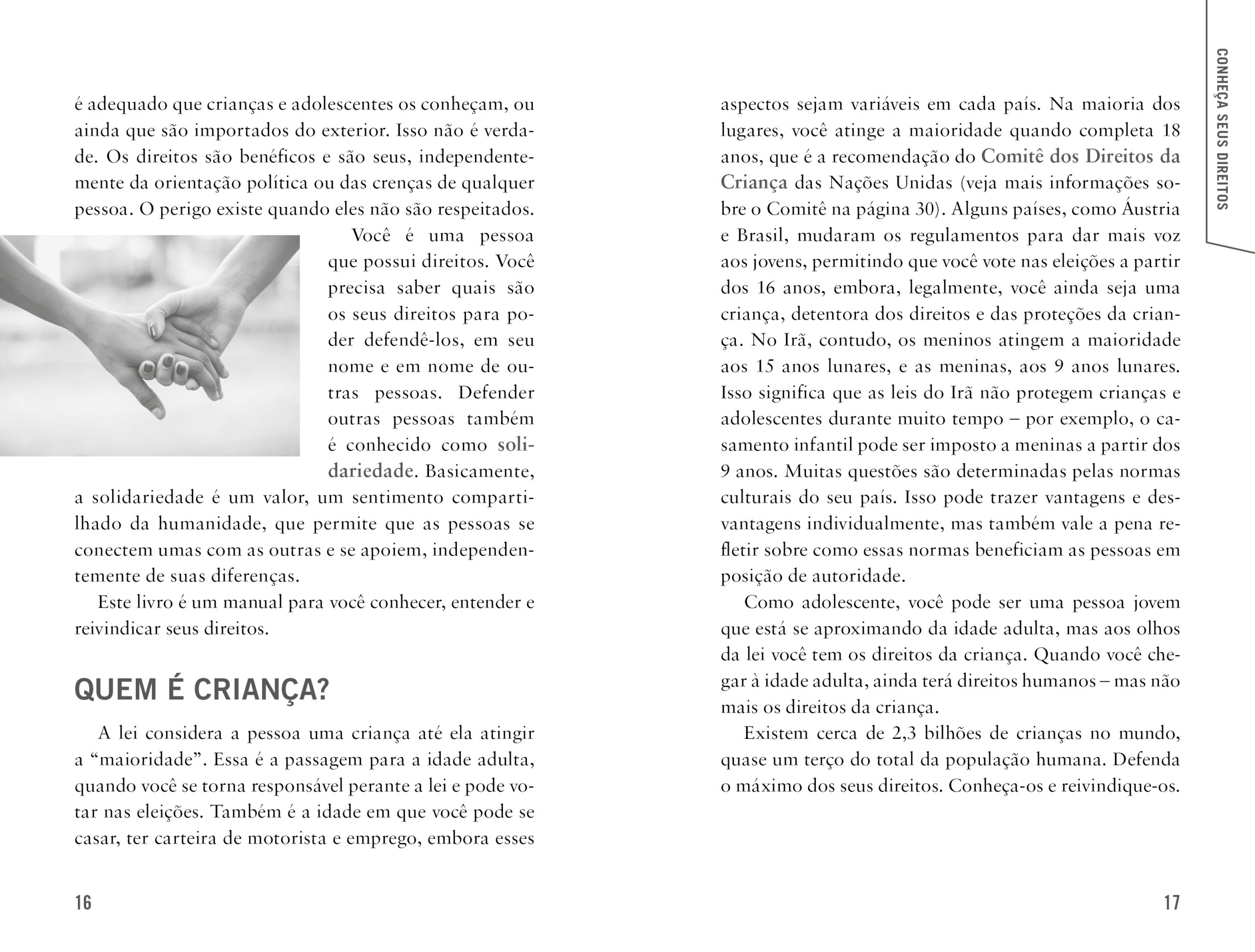 O livro, em linguagem concisa e acessível, apresenta os Princípios Gerais, a história dos Direitos da Criança e do Adolescente e a abrangência dessas conquistas sociais em amplitude global. A obra também traz orientações e revela estratégias para a reivindicação de direitos, apostando na inteligência, na sensibilidade e no protagonismo da juventude. Ao final, há um glossário que explica diversos conceitos a respeito desses direitos e uma lista de entidades ao redor do mundo que lutam pelos Direitos da Criança e do Adolescente.