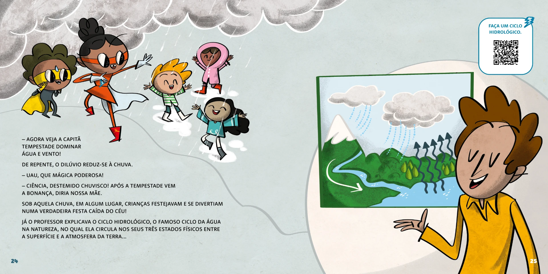 Com Amélia, a capitão tempestade, é possível aprender mais sobre a natureza, chuvas e tempestades e a beleza e complexidade que elas podem ter. Os leitores se divertem com a narrativa e as divertidas ilustrações enquanto aprendem sobre eventos atmosféricos.