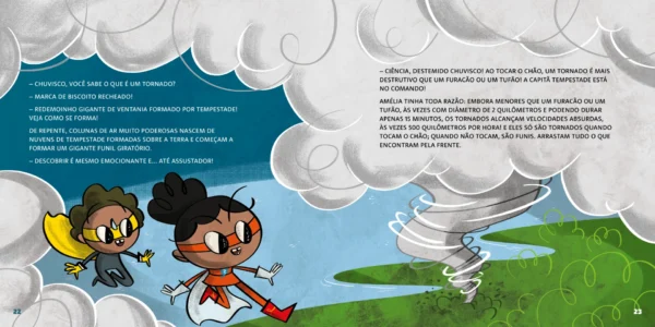 Você faz muitas perguntas sobre fenômenos da natureza? Já quis saber por que e como chove? Se pergunta como se formam tempestades, furacões, tufões e tornados? Adora se divertir fazendo experimentos científicos? Amélia também é assim! Ela e seu irmão Marcelo vivem uma verdadeira aventura para desvendar os fenômenos atmosféricos.